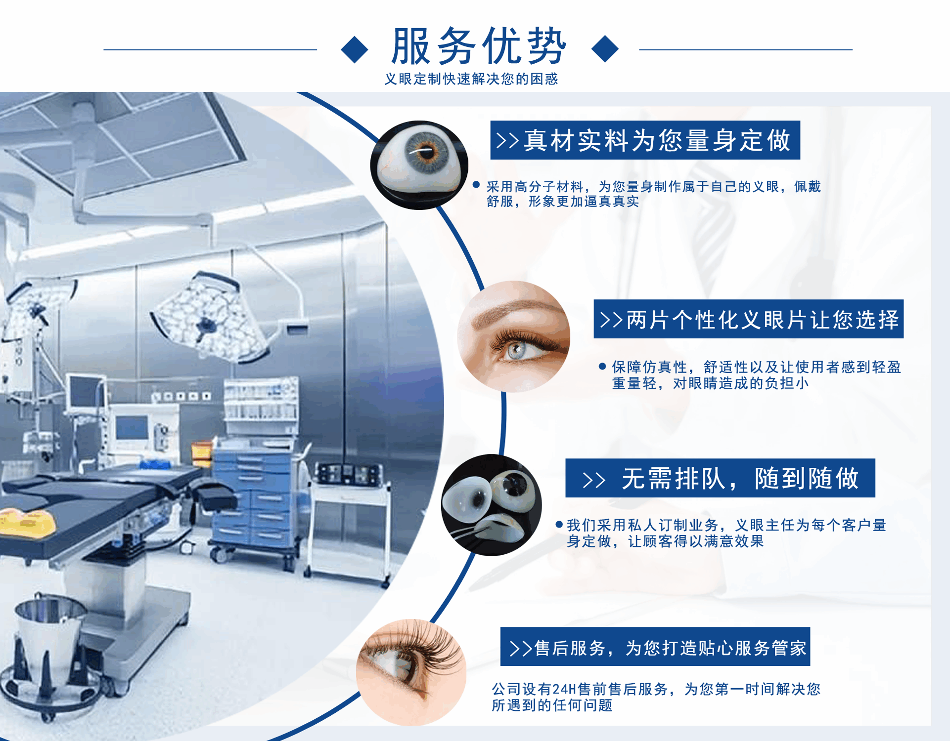 正目醫(yī)療科技有限公司致力于為用戶提供假眼,在哪里可以定制義眼,義眼哪家好,假眼價(jià)格,義眼價(jià)格,義眼費(fèi)用,義眼公司,是集義眼定制、保養(yǎng)、咨詢?yōu)橐惑w的綜合性義眼定制企業(yè)。 獨(dú)創(chuàng)的義眼工藝結(jié)構(gòu),根據(jù)仿生物學(xué)原理,采用進(jìn)口醫(yī)用植入材料:高分子材料、無(wú)毒素、性能穩(wěn)定、堅(jiān)固耐用)、聚甲基丙乙烯阝-羥乙酯HEMA材料(軟性親水性材料),結(jié)合獨(dú)特的義眼個(gè)性化佩戴技術(shù),按佩戴者健眼的形態(tài)、角膜、虹膜、及瞳孔的大小、色澤、血管紋理和脂肪分布,設(shè)計(jì)制作。擁有超薄、質(zhì)輕、光滑、親水透氧、佩戴舒適和高逼真的特點(diǎn)。為保證佩戴效...